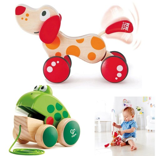 Hape Walk A Long Puppy Wooden Push Pull Toy With Pull Puppy Frog For Toddlers Ebay